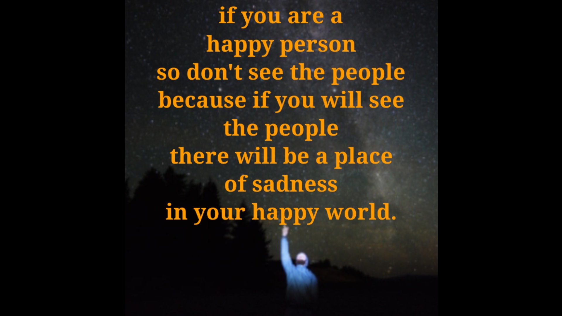 If you are happy person so don’t see the people because if you will see the people there will be a place of sadness in your happy world.